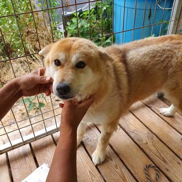 clyde is a 4 year old shiba mix .. she is 25 kg rescued from the horrific dog meat trade in south korea ,, she will need a home with time and patience